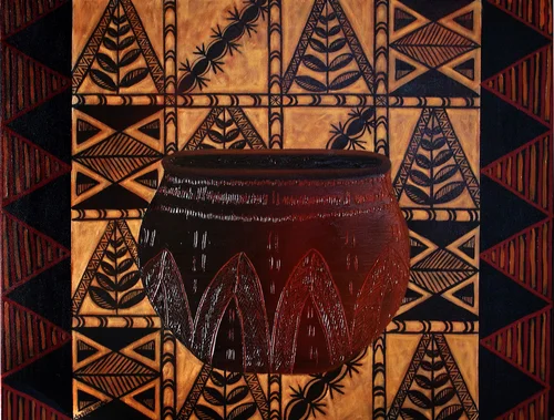 Domestic scenery dominates her paintings; women and children in a variety of homely activities emphasize a relaxed and gentle intimacy that celebrates kinship and cultural relationships. This imagery extends beyond the personal and refers to subtle tensions within Pacific and European ties, expressing the rich, but sometimes, fraught relationship of dual heritage.